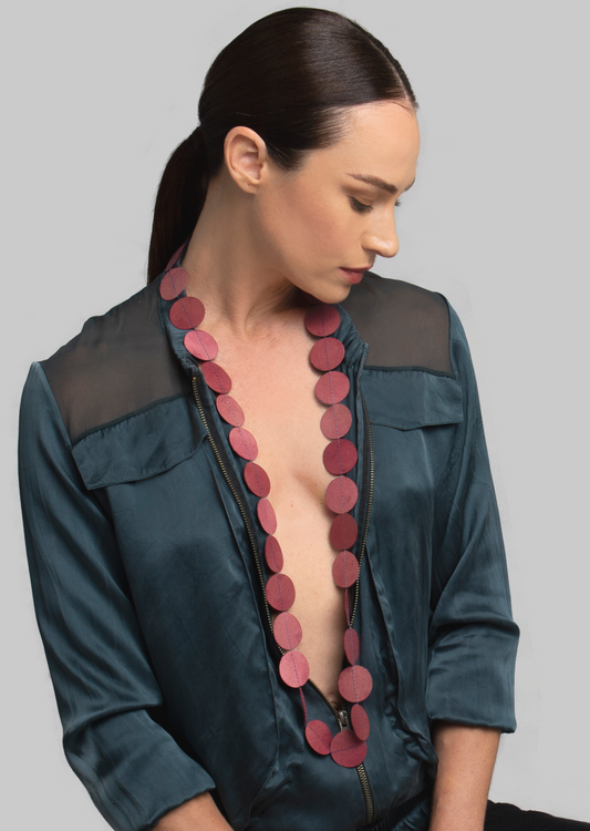 A partir de seu ateliê, nos arredores de Belém, no Pará, desenvolve peças feitas à mão, utilizando matérias-primas produzidas em parceria com a Comunidade Extrativista de Pedra Branca, da Área de Proteção Ambiental da Ilha de Cotijuba.