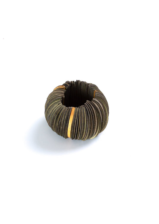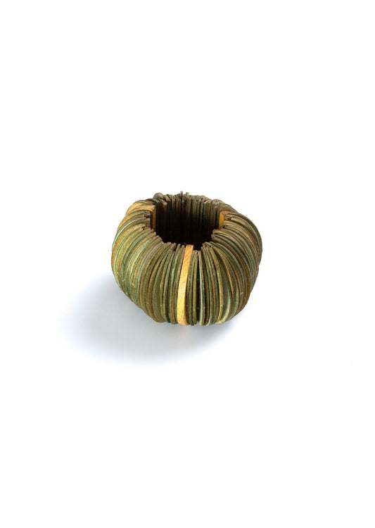 A partir de seu ateliê, nos arredores de Belém, no Pará, desenvolve peças feitas à mão, utilizando matérias-primas produzidas em parceria com a Comunidade Extrativista de Pedra Branca, da Área de Proteção Ambiental da Ilha de Cotijuba.