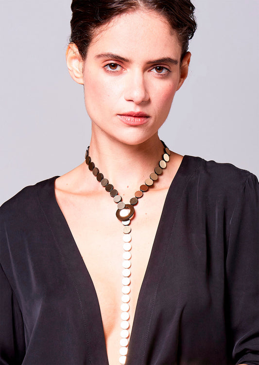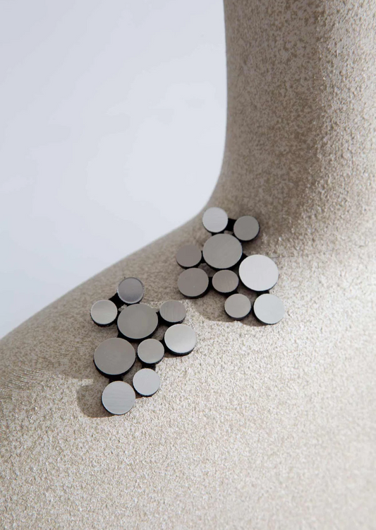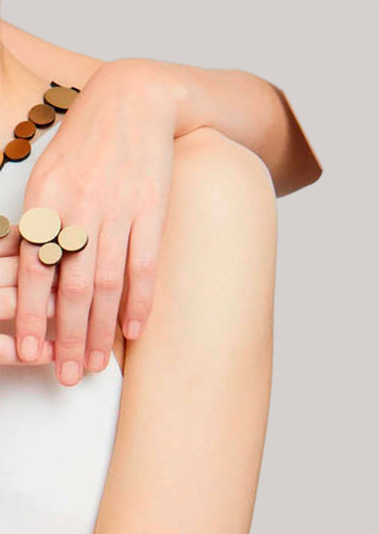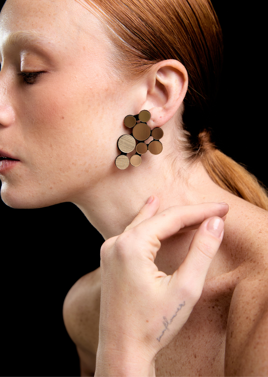 A partir de materiais não convencionais como alumínio, couro, acrílico, aço inoxidável e tecidos, essas irmãs nascidas no Brasil, mas vivendo há muitos anos na Argentina, desenvolvem joias contemporâneas a partir do seu ateliê em Buenos Aires, inspiradas na arte, arquitetura, geometria, natureza e na infância que passaram no Rio de Janeiro. Cada peça conta uma história.