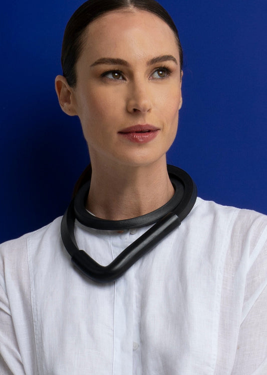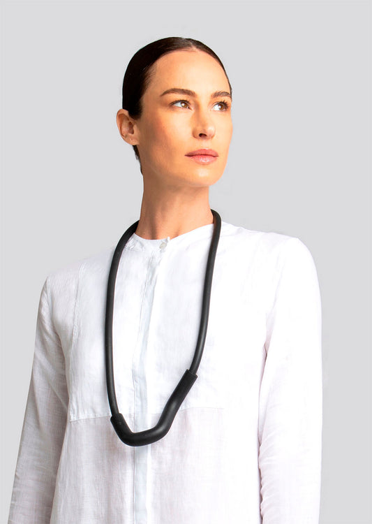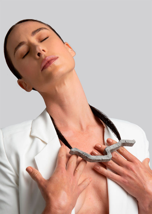 Atraída por materiais não convencionais como borracha, mangueira, concreto e crina de cavalo (sim, crina de cavalo!), Ludymila entende a forma como o produto da abstração com significado, conceito e sensibilidade. Cria, a partir de seu ateliê no Sul de Minas Gerais, formas inusitadas e belas, verdadeiras esculturas para vestir.