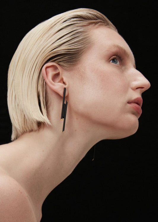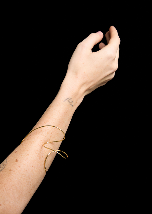Formada em Arquitetura e Urbanismo pela FAU-USP e atualmente designer gráfica e joalheira, Mayumi Okuyama tem um verdadeiro fascínio pelos materiais. A partir deles direciona suas pesquisas e experimentações, revelando narrativas e espaços que surgem na busca da poesia que identifica em cada um. Folhas, lascas de madeira, pedras de sal e, logicamente, metais nos mais diversos formatos fazem parte da sua investigação e produção.