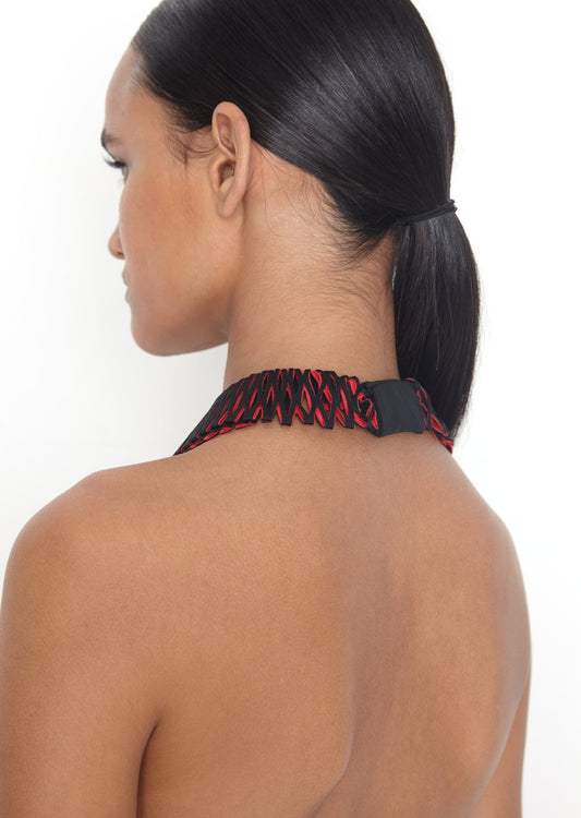 Norma transforma materiais cotidianos, como a lycra, em pequenas obras de arte para vestir.