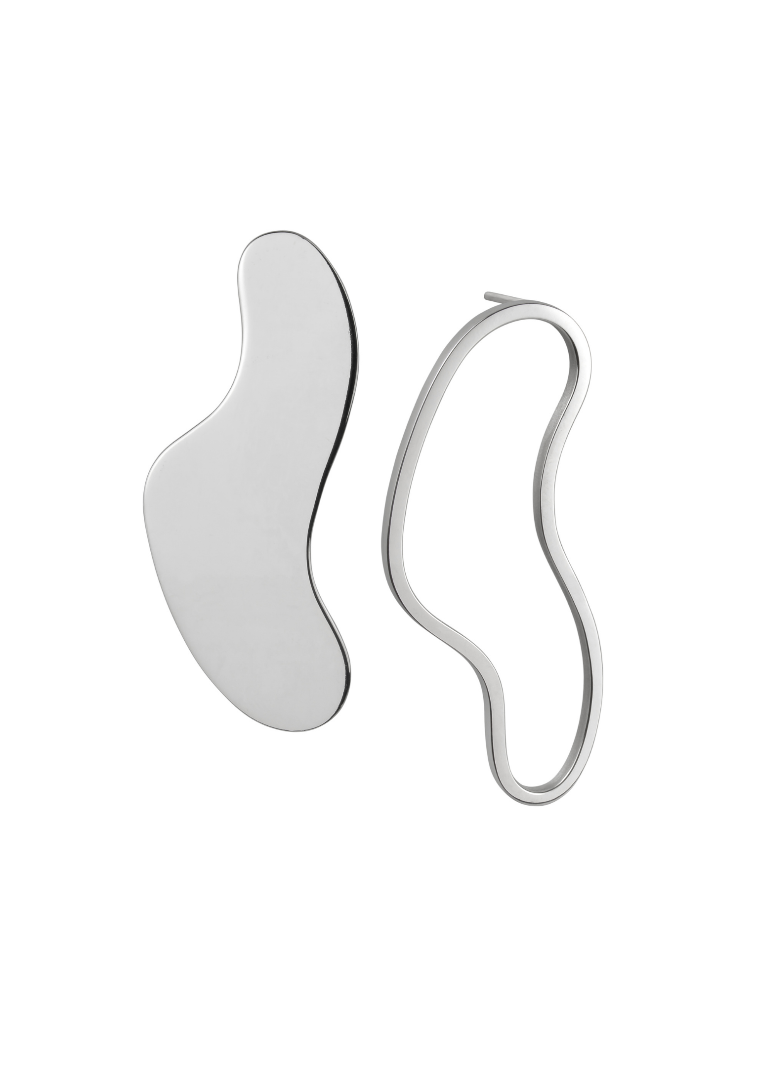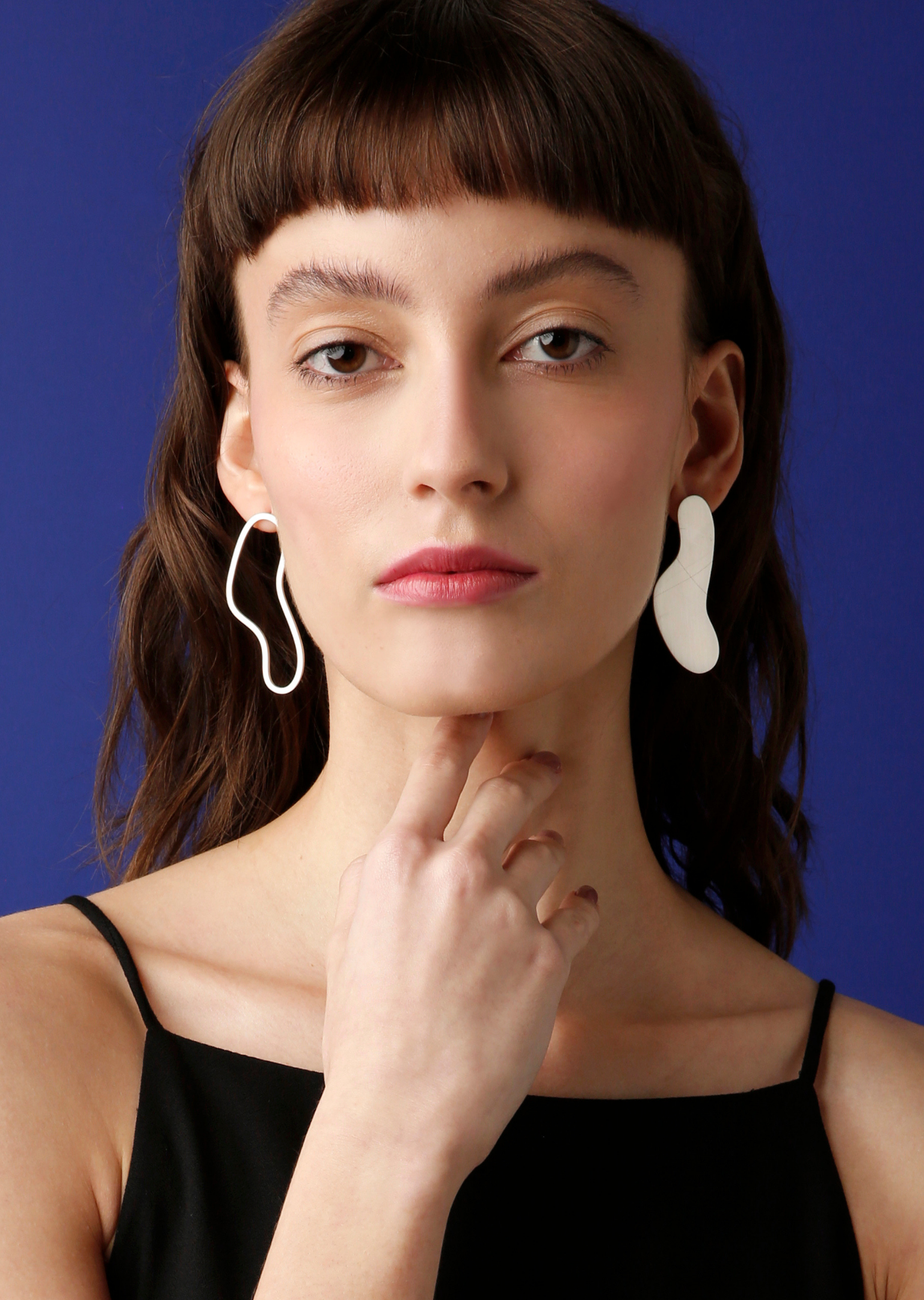 Brinco moderno e marcante feito em prata 950 com acabamento fosco, integrando a série Cheio | Vazio desenvolvida a partir de uma pesquisa da artista sobre contrastes entre sólidos e contornos, transparências e reflexos e as sobreposições na presença e ausência da matéria. Pino e tarraxa também em prata. Cor:...