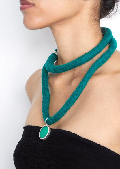 Colar África, lã feltrada e prata